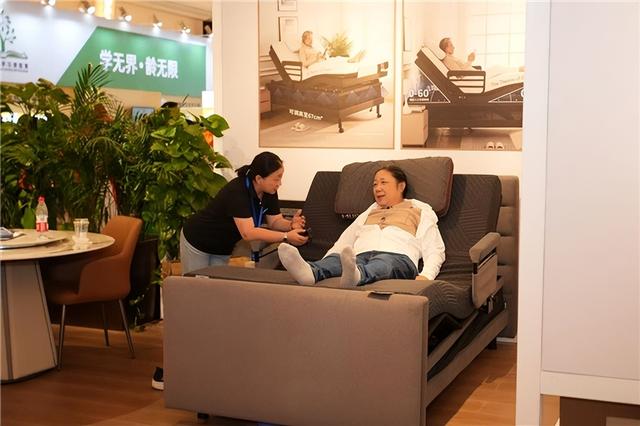 梦百合还展出了旗下NISCO里境品牌的功能沙发椅,通过电动辅助起卧功能,帮助老人轻松起身,减少腰部及腿部负担,降低摔倒风险;同时,通过人体工学设计及高密度0压绵填充,实现人体不同部位的立体承托,帮助老人缓解全身压力;多角度调节功能则适配阅读、休闲、小憩等多种使用场景,让老年人无论是在卧室、阳台、客厅,都能享受高品质的晚年生活。