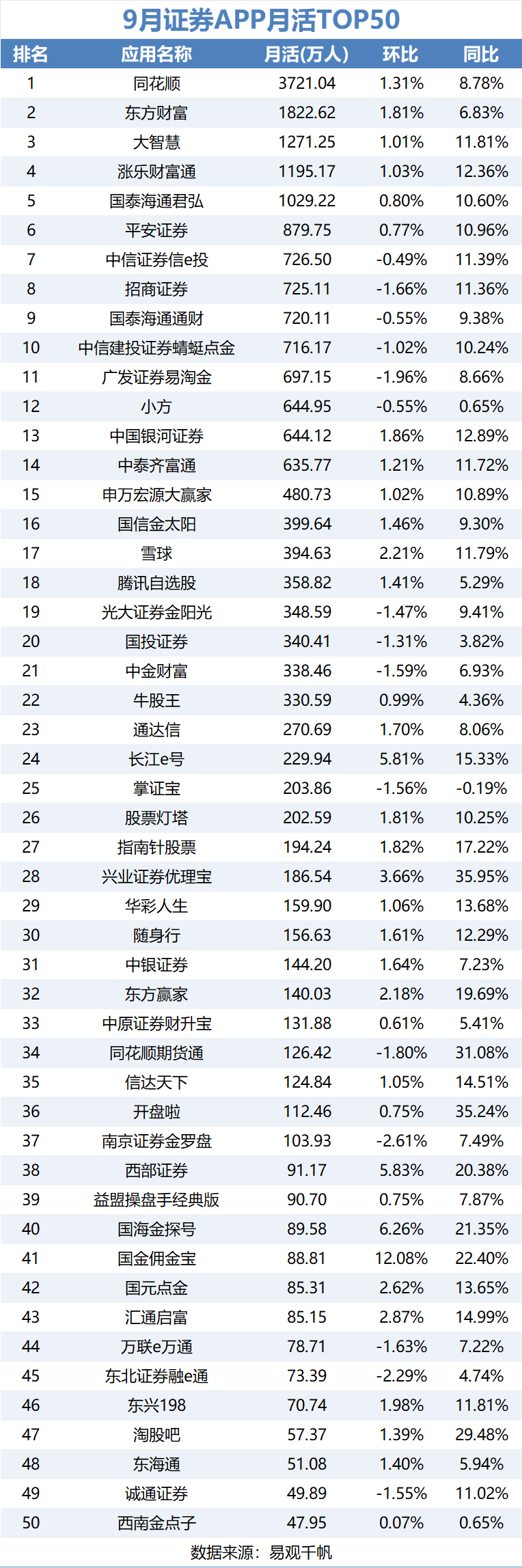 进入10月,A股市场出现短期波动。在此背景下,9月增速已有所回落的证券App,其月活增长态势能否维持,成为当前市场关注的焦点。
