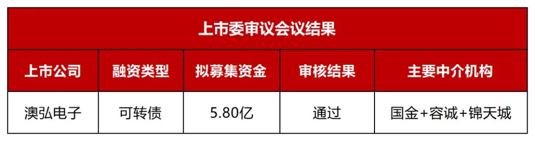 上交所上市委员会2025年第43~44次审议会议于10月21日召开,共审议2家企业,其中健信超导(首发)获通过,澳弘电子(再融资)获通过。