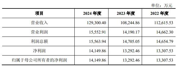 报告期内,公司实现营业收入分别为11.26亿元、10.82亿元、12.93亿元;同期实现归母净利润分别为1.33亿元、1.33亿元、1.41亿元。