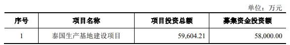 此次IPO拟募集5.80亿元,用于泰国生产基地建设项目。