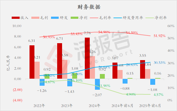 收入分别约为人民币6.31亿、6.71亿、7.76亿、3.07亿、3.55亿,2025年前6月同比+15.57%;