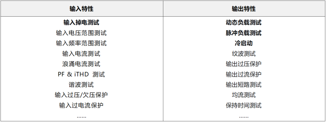 AI 服务器电源的测试标准体系相对完善,主要涵盖ORV3、M-CRPS、ITIC、T/UNP 498、T/UNP 539、80Plus、ATX、SSI等核心标准。这些标准从兼容性、可靠性、电气、通讯、环境、热学、机械、安规、EMC等多个维度定义了AI服务器电源的测试标准要求,其中电气特性的核心测试项如下: