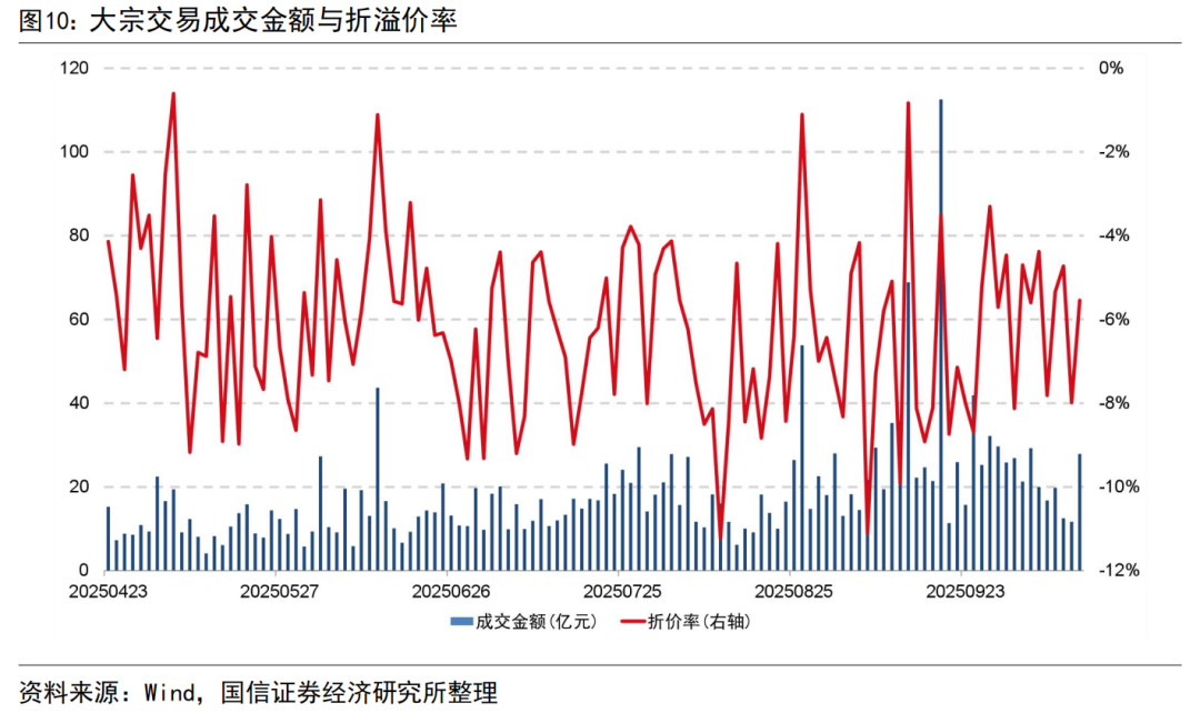 近半年以来大宗交易日均成交金额达到18亿元,20251021当日成交金额为28亿元,近半年以来平均折价率6.15%,20251021当日折价率为5.54%,近半年大宗交易成交金额与折价率如下图所示。