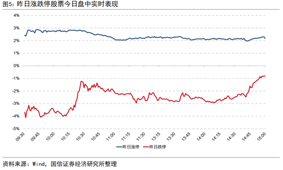 我们统计上市满3个月以上且昨日收盘涨停或跌停的股票在今日盘中的实时表现。昨日涨停股票今日收盘收益为2.18%,昨日跌停股票今日收盘收益为-0.81%。昨日涨跌停股票今日盘中实时表现如下图所示。