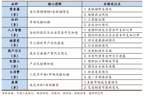 表1:近期热门品种梳理(括号内为近期趋势方向判断)