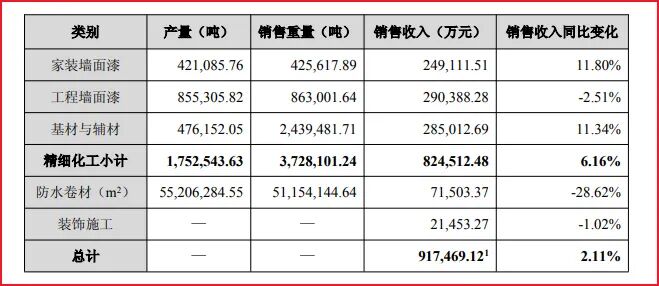 一系列亮眼的数据,彰显了三棵树强大的企业实力。三棵树披露的《2025 年1-9月主要经营数据的公告》显示,前九个月公司主要产品中,家装墙面漆收入24.91亿元,同比增长11.8%;工程墙面漆29.04亿元,同比减少2.51%;基材与辅材28.50亿元,同比增长11.34%;防水卷材7.15亿元,同比减少28.62%;防水涂料9.07亿元,根据销售场景分别计入家装墙面漆、工程墙面漆、基材和辅材三类产品。
