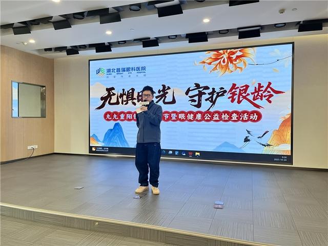(通讯员:何璠)无惧时光,守护银龄。2025年10月24日上午,湖北普瑞眼科医院在院12楼会议厅成功举办第二届“九九重阳·银龄艺术节”。本次活动集文艺表演、眼健康科普、公益检查与“银龄爱眼公益大使签约”于一体,为中老年朋友带来一场内容丰富、形式多样的眼健康公益活动。