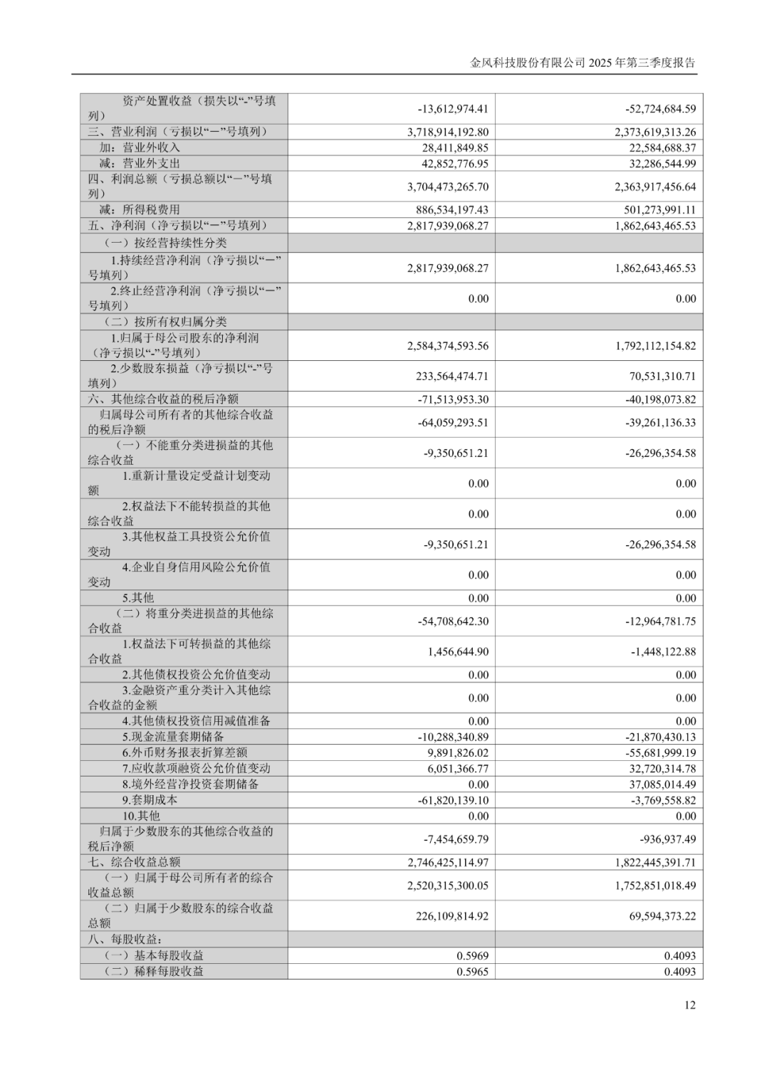 风芒能源获悉,10月24日晚,金风科技披露2025年三季度报告。
