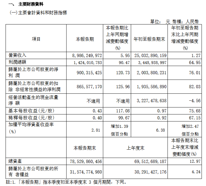 当天,公司还发布了前三季度利润分配预案。董事会拟向全体股东分配2025年前三季度现金红利0.34元/股(含税),合计分配7.06亿元,占合并后归属于母公司股东净利润的35.23%。
