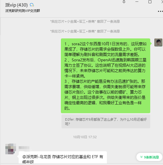 10月9号,我就在公众号文章里说了,存储芯片会是短期内AI概念里机会最大的板块。