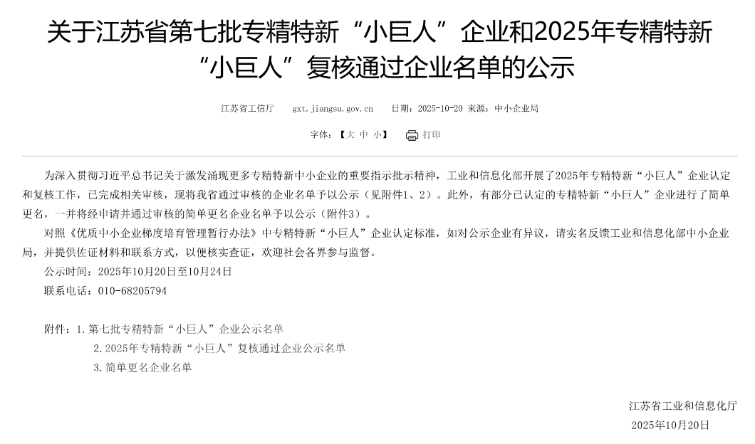The national-level “Little Giant” enterprise selection aims to foster a group of pioneering companies that focus on niche markets, possess strong innovation capabilities, hold a high market share, master key core technologies, and deliver exceptional quality and efficiency. It serves as a critical benchmark for assessing high-quality enterprise development.The initial certification and successful recertification represent outstanding performance in two key dimensions: breakthrough innovation and sustained leadership.