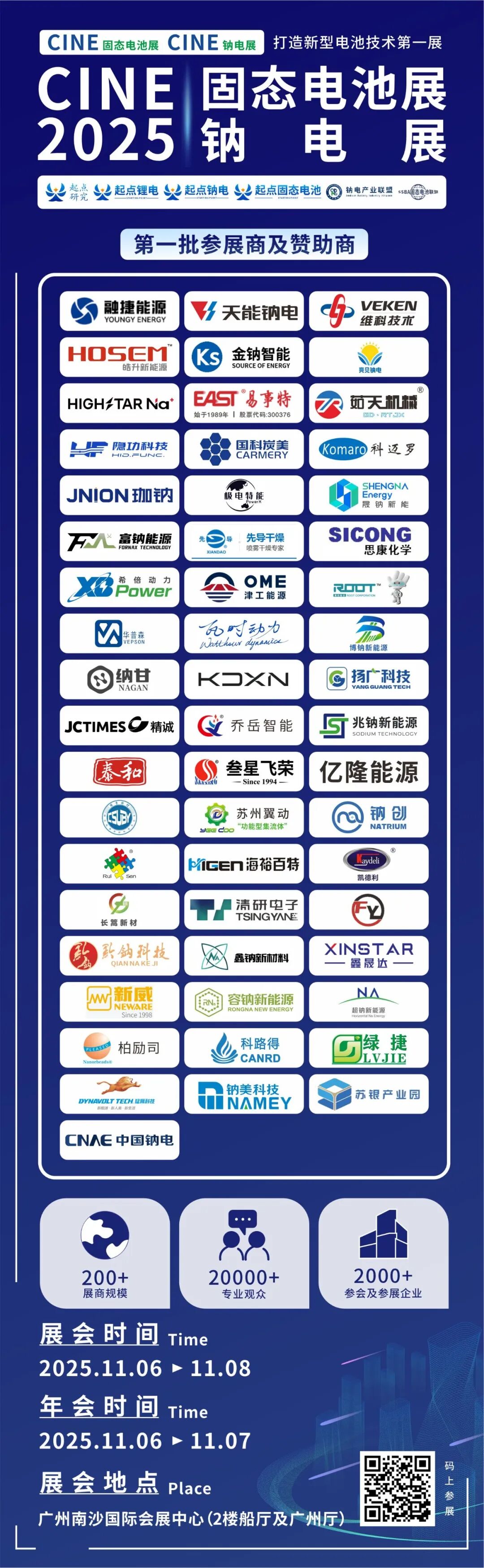 金钠科技/茹天科技/海四达钠星/融捷能源/易事特钠电/泰和科技/隐功科技/科迈罗/国科炭美/晟钠新能/中钠能源/乔岳智能/津工能源/科达新能源/时代思康/富钠能源/极电特能/华普森/亮见钠电/叁星飞荣/珠海纳甘新能源/皓升新能源/扬广科技/银川苏银产业园/兆钠新能源/精诚时代/儒特股份/希倍动力/先导干燥/瓦时动力/博粤新材料/苏州翼动新能/亿隆能源/钠创新能源/瑞森新材料/海裕百特/凯德利/长篙新材/清研电子/孚悦科技/珈钠能源/天能钠电/鑫钠新材料/同兴科技/黔钠科技/维科技术/鑫晟达/新威/容钠新能源/科路得新能源/华迈智能/猛狮新能源/绿捷环境/钠美科技/柏励司/中科固能/国联动力/金龙羽/诺达智慧/天石科丰/有研广东院/博粤新材/巴斯夫杉杉/清研电子/先导智能/派能科技等