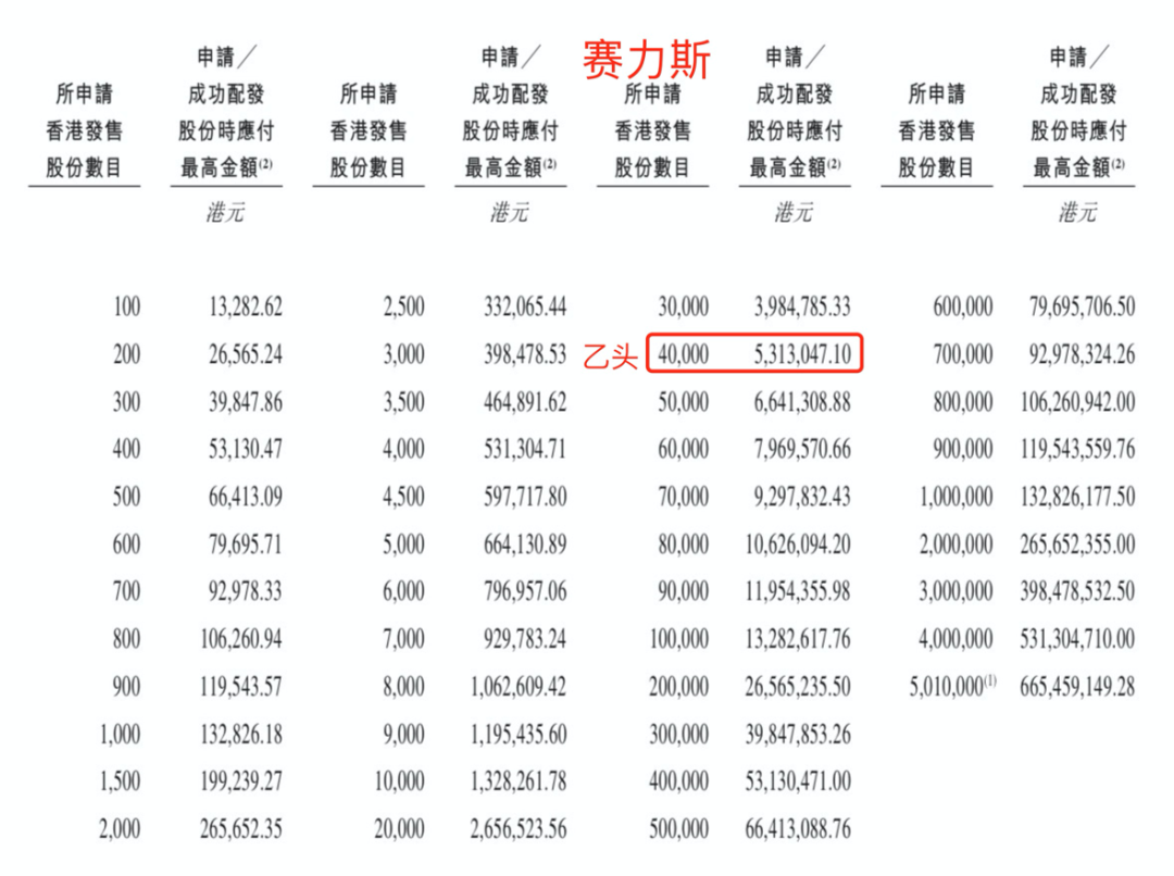 赛力斯乙组按1.8万人申购算,预估乙头中签1~3手。
