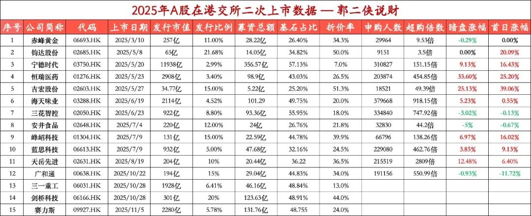 然而,即便是“鸡肋”也有肉。这些赴港上市的A股通常都是大盘股,募资规模大,尽管上市后的涨幅可能不大,但中签率较高。如果投资者能够精心挑选并重仓投入,最终的收益未必比其他新股少。例如今天暗盘大涨44%的剑桥科技。