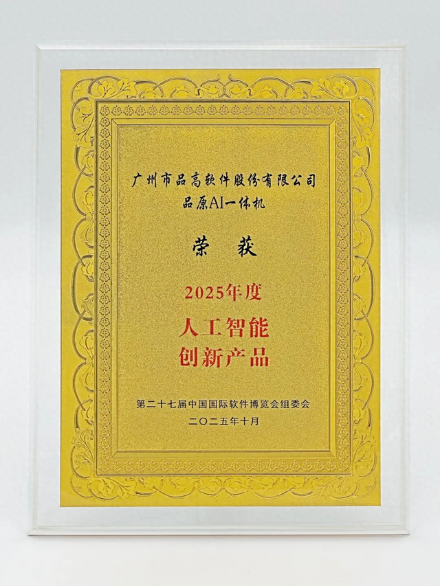 日前,被誉为“中国软件产业风向标”的第27届中国国际软件博览会在郑州落下帷幕。作为国内软件领域规模最大、规格最高、影响力最广的专业盛会,本届软博会以“开源构筑新生态,软件智造新未来”为核心主题,聚焦AI重塑软件、软件定义未来、工业软件创新发展等领域,汇聚了众多龙头企业与行业专家,共同探讨软件产业的创新与未来。其中,品高股份(688227.SH)携自主研发的品原AI一体机强势突围,成功斩获“2025年度人工智能创新产品”奖项,成为国产AI算力设施突破“卡脖子”难题的标志性成果。