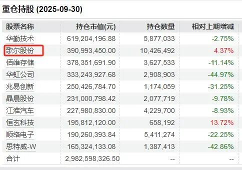 值得一提的是,冯明远的其它3只基金也对歌尔股份进行了加仓,其中信澳研究优选对歌尔股份的加仓比例最高,达11.55%,而信澳智远三年持有、信澳领先智选对歌尔股份的加仓比例分别为7.85%和9.88%。