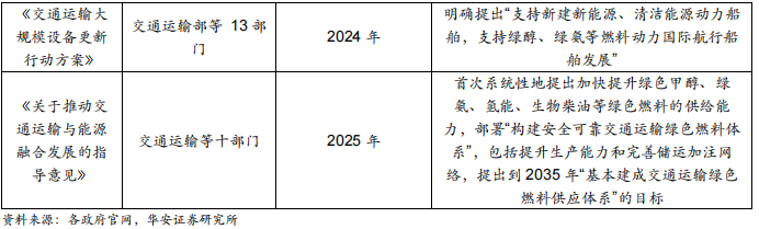 为推动我国航运业加快实现“双碳”战略目标,我国先后印发《船舶大气污染物排放控制区实施方案》《2030 年前碳达峰行动方案》《绿色交通“十四五”发展规划》等文件,加快推动航运业绿色低碳转型,深入贯彻绿色发展理念。2025年交通运输等十部门联合发布《关于推动交通运输与能源融合发展的指导意见》,明确提出到 2035 年“基本建成交通运输绿色燃料供应体系”的目标。