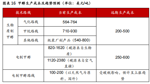 2.2 生物质甲醇和电制甲醇两种路线齐头并进,成本下降可期