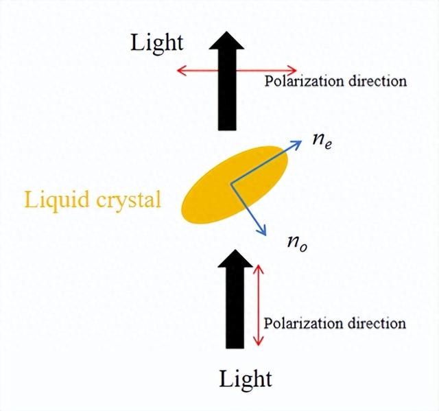 LCoS(Liquid-Crystal-on-Silicon)的全称为硅基液晶,也就是在硅基底上铺液晶对光进行调制,可以看出其与LCD(Liquid-Crystal-Display)同源,都是利用液晶对光的偏振态进行调制,然后利用偏振片达到调制光的强度或相位的目的。下面为液晶改变光的偏振态的原理:液晶具有双折射的性质,也就是存在快慢轴,液晶在快慢轴偏振方向的折射率不一致,经过液晶层之后,快慢轴方向就存在相位差,导致光线偏振态发生变化,使得光线强度或者相位的变化。