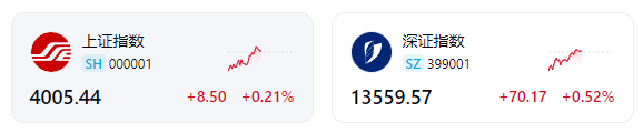 截至10月29日中午休盘,沪指报4005.44点,上涨0.21%;深证成指报13559.57点,上涨0.52%。