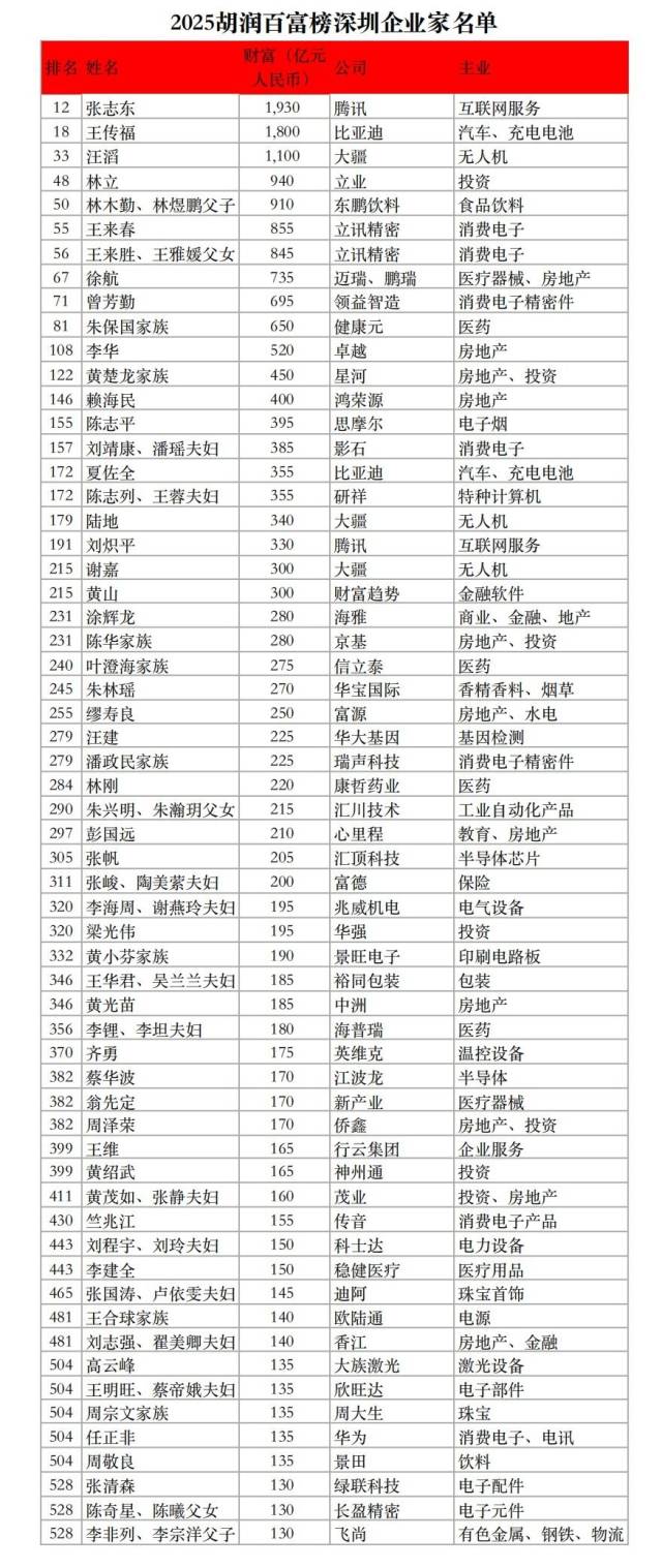 2025胡润百富榜前深圳企业家
