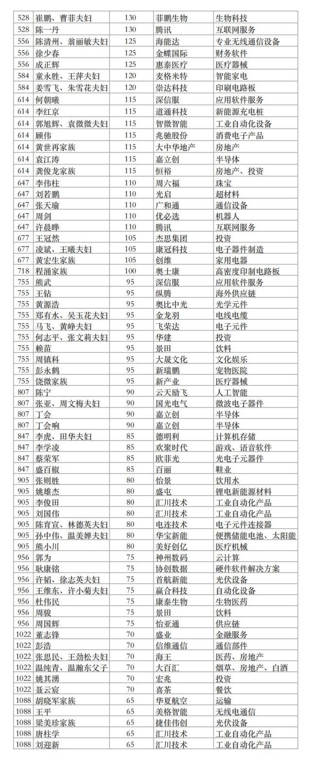 其中新入选的深圳企业家有40位,其中刘靖康、潘瑶夫妇以385亿元遥遥领先。