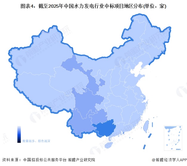 4、中国水力发电行业招投标项目主要分布在广西省、陕西省等地