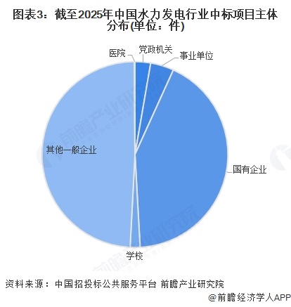 3、中国水力发电行业中标项目的主要主体为其他一般企业和国有企业