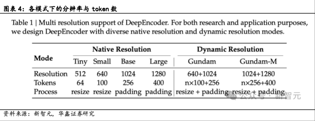编码器DeepEncoder负责图像特征提取与视觉token的压缩处理。它采用创新的“SAM-base+CLIP-large”串联结构,参数规模约3.8亿。DeepEncoder的输入模式主要分为两类:原生分辨率与动态分辨率,且每种模式均包含多个子模式。其中,原生分辨率模式下设Tiny、Small、Base和Large四种子模式;动态分辨率模式则由两种原生分辨率组合而成,其设计初衷是为了满足超高分辨率输入场景的应用需求。此外,系统还采用瓦片化(tiling)二级窗口注意力技术,可进一步有效降低激活内存消耗。在Gundam模式下,DeepEncoder输出的视觉token数量计算公式为n×100+256(n表示瓦片数量)。该模式与四种原生分辨率模式协同训练,最终实现单一模型对多种分辨率的支持能力。