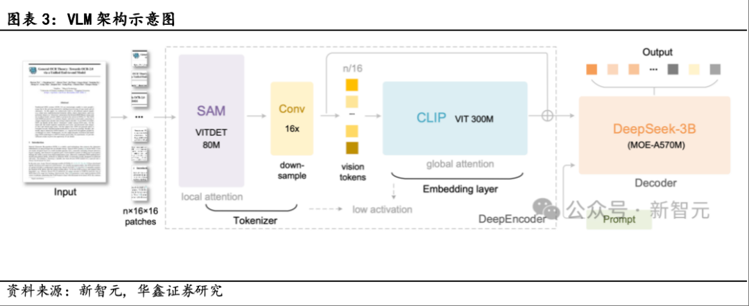 DeepSeek-OCR采用统一的端到端VLM架构,由编码器(DeepEncoder)和解码器(DeepSeek-3B-MoE)组成: