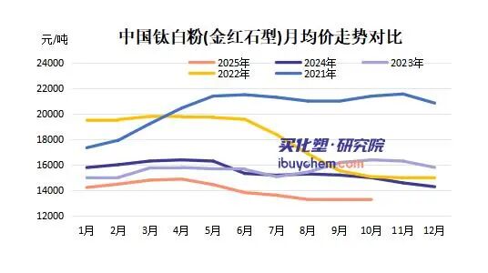 买化塑研究院的数据显示,2025年第三季度,国内钛白粉(金红石型)均价为13411元/吨,环比二季度下跌6.87%,同比去年三季度下跌11.98%。尽管9月钛白粉价格出现短暂反弹,但由于终端需求增长不及预期,反弹幅度有限,行业整体仍处于下行通道。