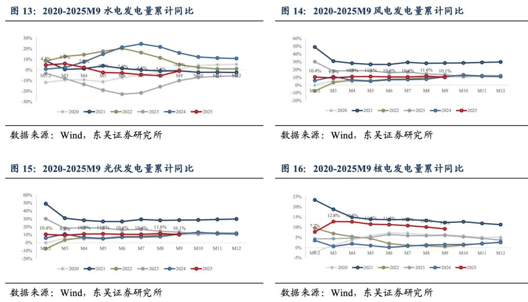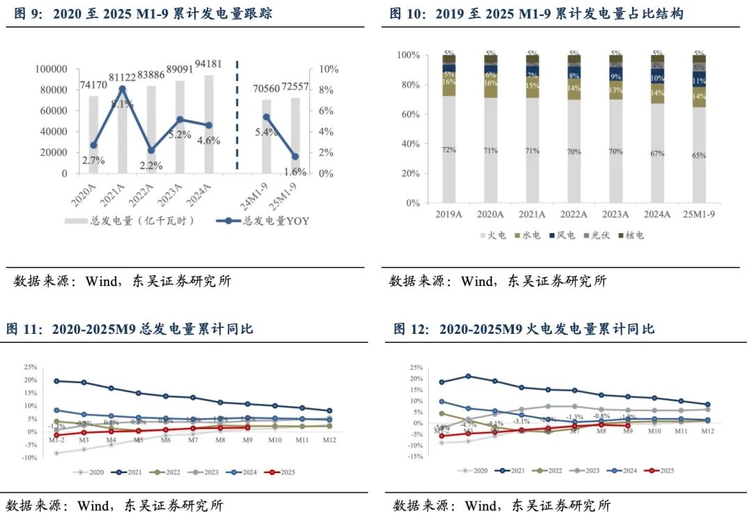 2.2.发电:2025 M1-9发电量同比+1.6%,火电、水电偏弱