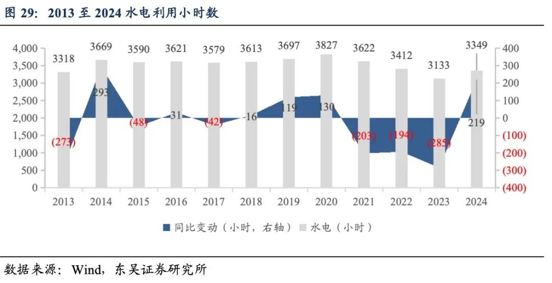 利用小时数:2024年1至12月,中国风电利用小时数2127小时,同比下降107小 时,光伏利用小时数1211小时,同比持平。