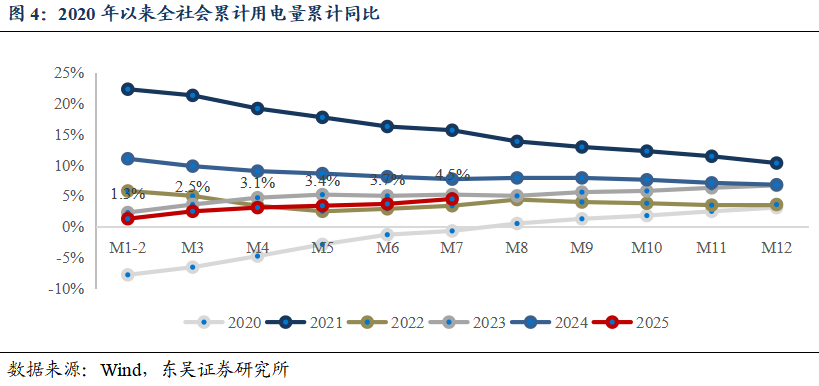 发电:2025 M1-7年累计发电量5.47万亿千瓦时(同比+1.3%),同比增速较2025H1同比增速0.8%上升0.5pct,其中,火电、水电、核电、风电、光伏分别-1.3%(2025H1同比-3.1%)、-4.5%(2025H1同比-2.9%)、+10.8%(2025H1同比+11.3%)、+10.4%(2025H1同比+10.6%)、+22.7%(2025H1同比+20.0%)。