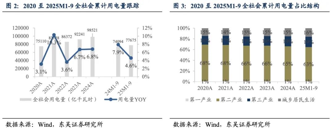 2.1.用电:2025M1-9全社会用电量同比+4.6%,增速稳健