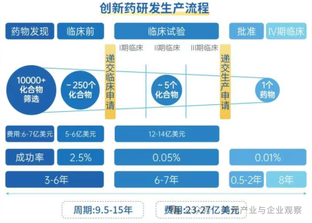 CRO的发展逻辑在于,药企在新药研发过程中的双十定律,也就是一个新药的问世需要投入金额超过10亿美元,投入时间超过10年;而在实际研发过程中,一项创新药物的问世往往需要9-15年周期,投入金额超过20亿美元。把研发过程外包给第三方企业,可以适当有效提高药物研发效率、降低时间成本;由于我国近十年来培育了大量高素质工程师,在研发外包领域有着成本优势,承接新药研发的企业也随之发展壮大。现在最新的趋势是,是使用人工智能,大大提高了药物分子筛选的效率。