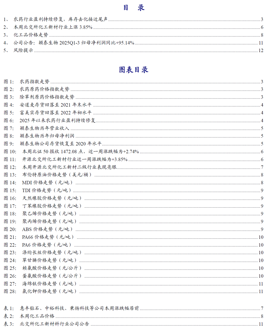 2025年年初以来,农药指数持续上行,在经历过长达三年的下跌之后,农药行业景气度开始回暖。