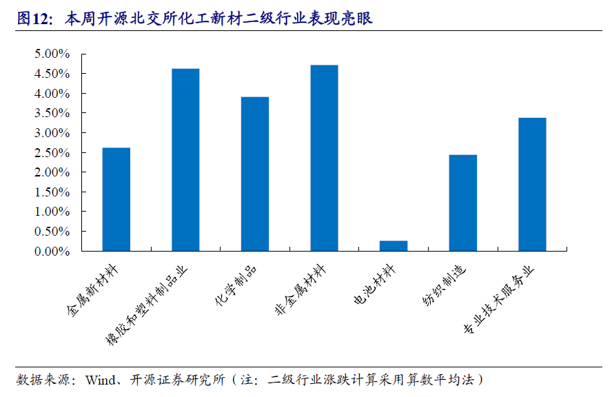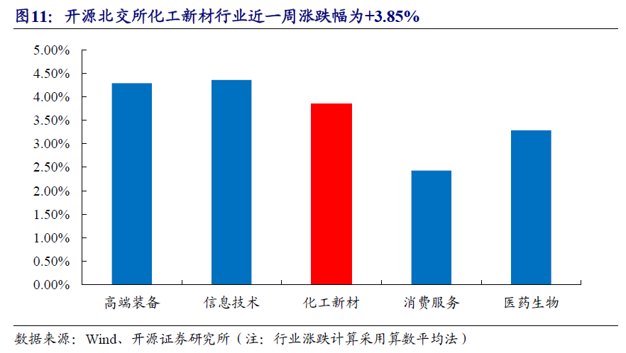 本周开源北交所化工新材行业涨跌幅为+3.85%