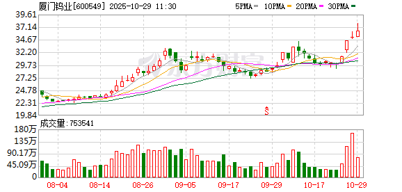 10月29日,A股小金属板块集体走强,钨方向领涨。截至发稿,中钨高新涨停,股价已2连板;厦门钨业涨超5%,股价创历史新高;章源钨业涨超4%,股价已8连阳;翔鹭钨业涨超2%,股价同样报8连阳。