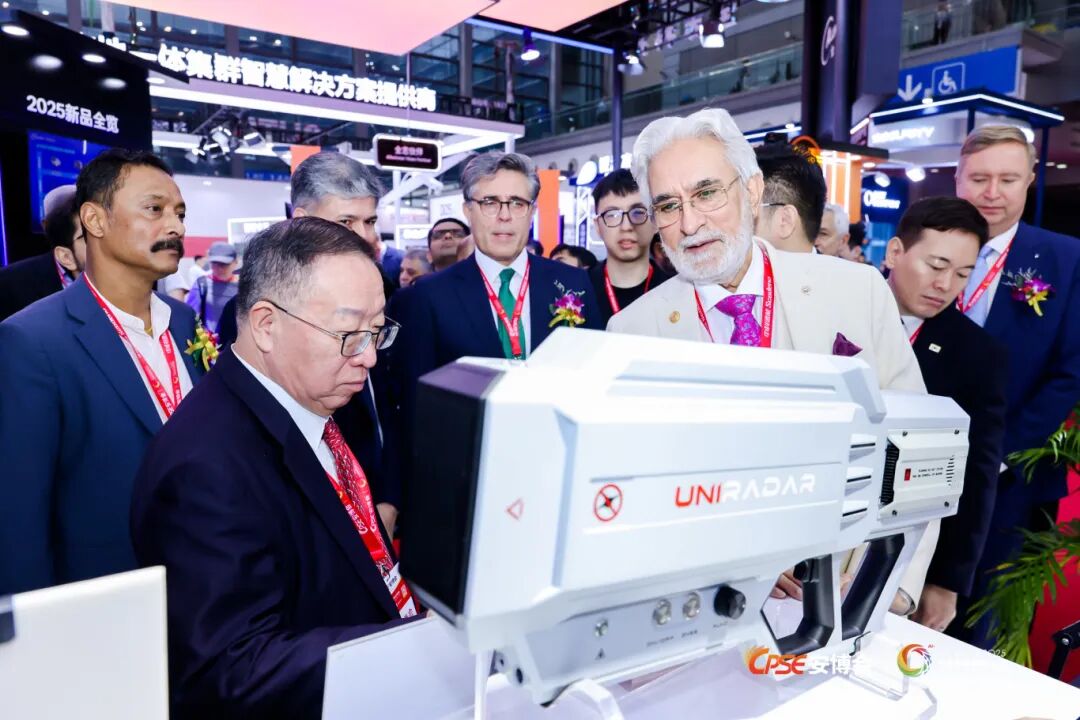 10月28日,2025第二十届中国国际社会公共安全博览会(以下简称CPSE安博会)暨全球数字城市产业博览会/国际低空安全产业博览会和第三届世界数字城市大会在深圳会展中心隆重开幕,会期四天。国务院发展研究中心原党组书记马建堂,中国国际经济技术合作促进会理事长、国家公务员局原副部长级副局长杨春光,中国人民公安大学副校长霍宏涛,中国安全防范产品行业协会理事长顾建国,天地伟业技术有限公司董事长戴林,巴基斯坦驻华大使卡里尔·哈什米,伊朗驻广州总领事赛义德·哈里里,2025第三届世界数字城市大会秘书长、深圳市智慧城市产业协会执行会长杨鹏分别致辞,泰国总理政策顾问委员会成员、泰国前副总理蓬贴·帖甘扎纳视频致辞,第二十届CPSE安博会主席杨金才宣布开幕。