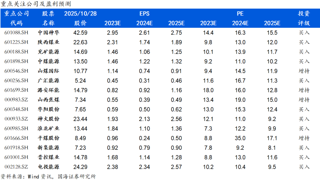 整体看,目前煤炭板块基金重仓股持仓占比延续低配,板块拥挤度较低。而三季度以来,煤价持续回暖,截止10月24日北方港口动力煤770元/吨,创年内新高。步入四季度,冬季旺季来临+查超产政策对供给约束的影响具有持续性,煤价有望保持上涨,煤炭板块底部配置价值凸显。另外,从大方向来看,煤炭开采行业供应端约束逻辑未变,需求端可能阶段性起伏波动,价格亦呈现一定震荡和动态再平衡。复盘行业30年经验,煤炭价格呈现震荡向上趋势,背后的驱动因素包括人工成本刚性上涨,安全投入、环保投入的持续加大,原材料动力等大宗商品涨价,以及地方政府加大征税力度等,从行业发展大趋势来看,上述驱动因素依然存在,煤价长期内仍然有上涨的诉求,过程可能是曲折的,但是方向应该是明确的。头部煤炭企业资产质量高,账上现金流充沛,呈现“高盈利、高现金流、高壁垒、高分红、高安全边际”五高特征。建议把握低位煤炭板块的价值属性,维持煤炭开采行业“推荐”评级。重点关注:(1)稳健型标的:中国神华、陕西煤业、中煤能源、电投能源、新集能源。(2)动力煤弹性较大标的:兖矿能源、晋控煤业、广汇能源。(3)焦煤弹性较大标的:淮北矿业、平煤股份、潞安环能、山西焦煤。