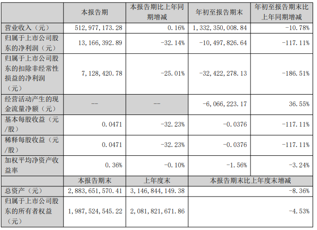 其中第三季度,公司营业收入为3.15亿元,同比下降14.8%;归母净利润亏损3549万元,同比下降490.0%;扣非归母净利润自去年同期亏损318万元变为亏损4782万元,亏损额进一步扩大。