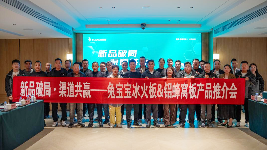 10月28日,兔宝宝工装运营公司以“新品破局,渠道共赢”为主题的兔宝宝无机阻燃饰面板、铝蜂窝板产品推介会在洛漾半岛成功召开,来自江浙沪皖地区的核心经销商齐聚一堂,共探新品商机,共话渠道未来。本次会议不仅为秋冬工装市场注入新动能,更搭建起品牌与经销商协同发展的沟通桥梁,最终在热烈的交流氛围中圆满落幕。