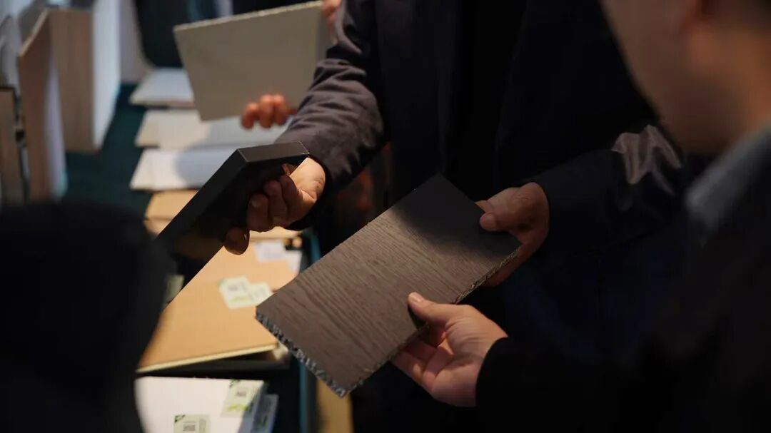 推介环节后,座谈会成为整场活动的“升温时刻”。工装运营公司总经理陈王昌主持本次座谈会,江浙沪皖经销商代表围绕新品推广、渠道合作等核心议题积极发声,现场讨论氛围热烈。有经销商聚焦“利润保障”,提出如何规避询价压价、防止串货等实际问题;也有代表关注细分场景适配,建议补充医疗级检测报告,以更好对接医院项目需求;还有经销商提及供应链效率,希望加快区域产能布局以缩短供货周期。针对这些关切,工装运营公司团队现场回应:后续将通过“项目备案制”“区域花色独家授权”建立管控机制,同时联合研究院推进医疗级检测升级,并计划在华东、华南区域扩充铝蜂窝板生产基地。坦诚的双向沟通,让经销商们的顾虑逐步消解,也为后续合作明确了方向。