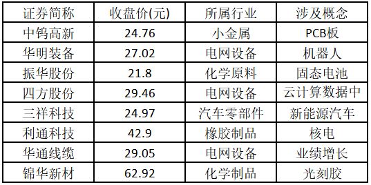 从涨势强度来看,涨停板个股中,股价创出历史新高的个股共有8只,包括中钨高新、华明装备、振华股份、四方股份、三祥科技、利通科技、华通线缆、锦华新材。欢迎大家关注微信公众号“道达号”,其“道达涨停复盘”栏目为大家解读。