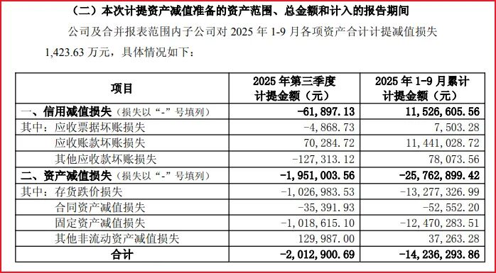 同日,惠达卫浴还发布了一份《关于计提资产减值准备的公告》,公告透露:2025年1-9月,公司累计计提各项资产减值损失为 1,423.63万元,减少合并利润表利润总额1,423.63万元。公司本次计提的资产减值准备事项未经会计师事务所审计,最终数据以会计师事务所审计的财务数据为准。