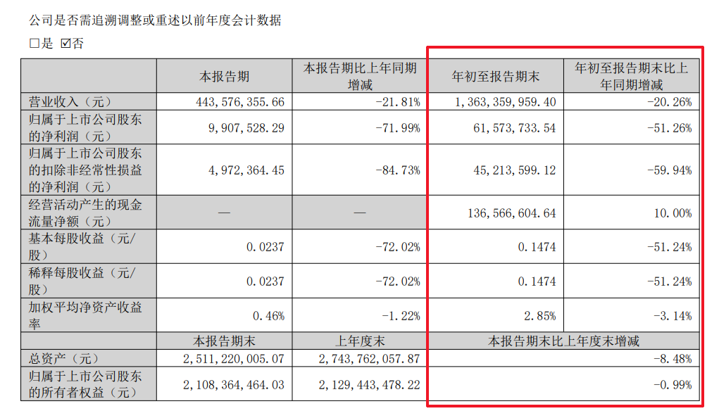 归母净利下降51.26%