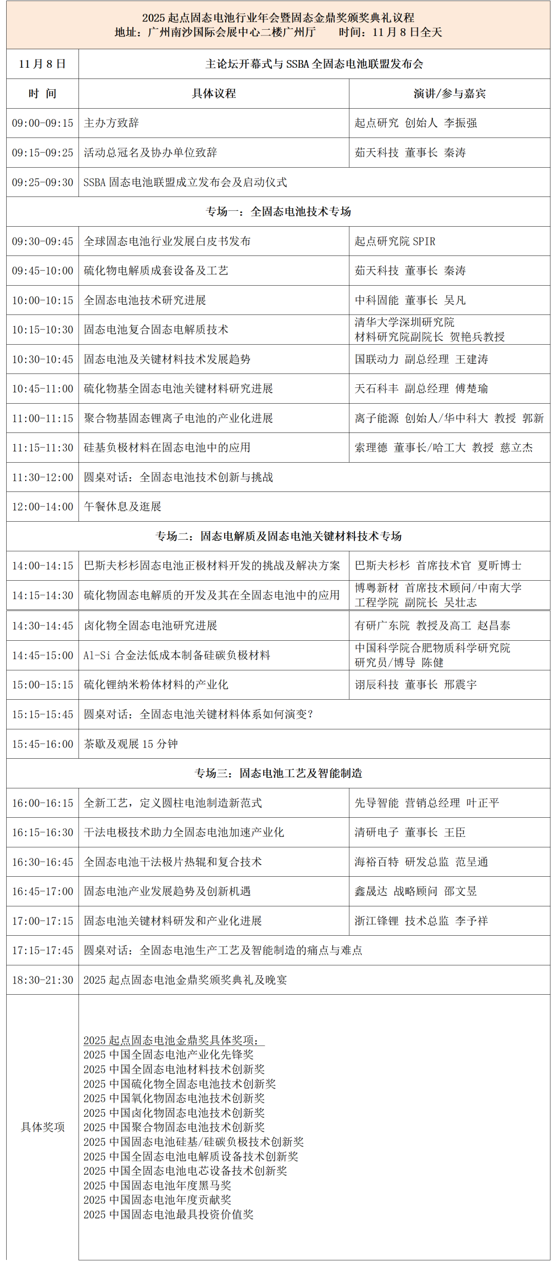 主办单位:起点固态电池、起点锂电、SSBA全固态电池联盟