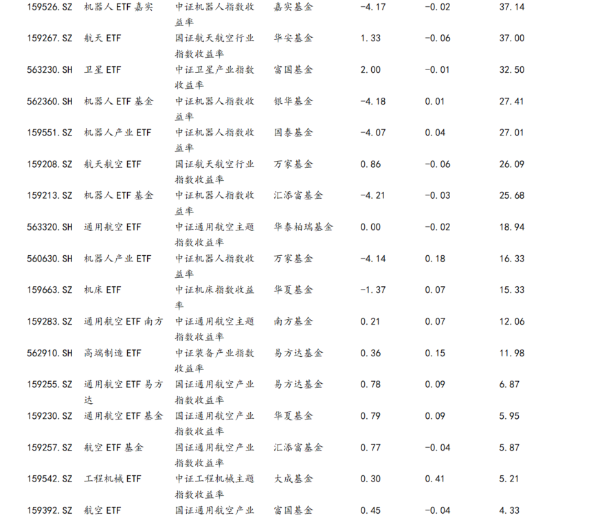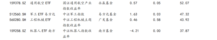 10月机械军工行业ETF行情比较淡,涨跌幅都比较小。